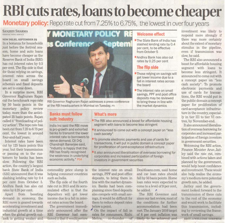 RBI cuts rates,loans to become cheaper